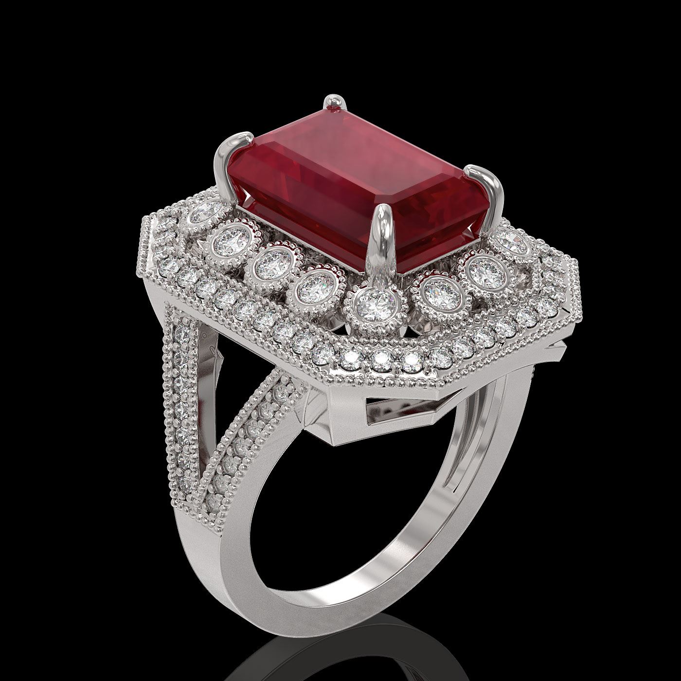 REF-171X5A - SKU: 43367 ---- 7.11 ctw Certified Ruby & Diamond Victorian Ring 14K White Gold