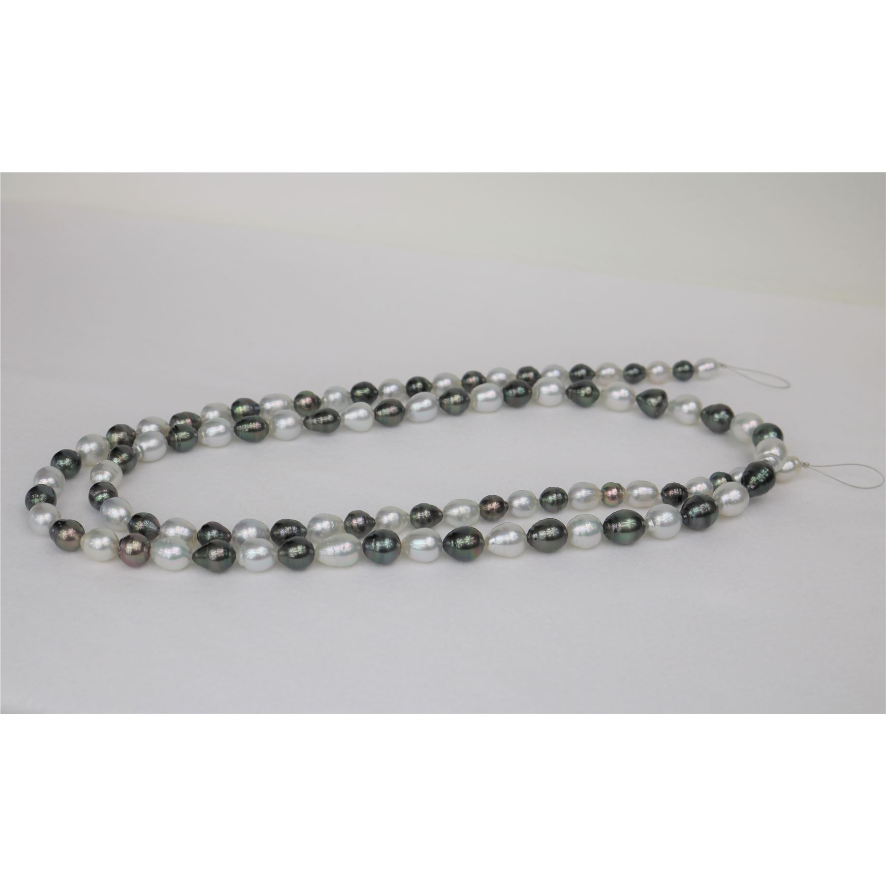 AAA Luster, South Sea and Tahitian Black and White Circle Baroque Pearls, 36 inches hand knotted gold fishhook clasp #CP24