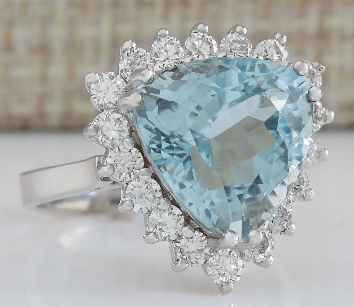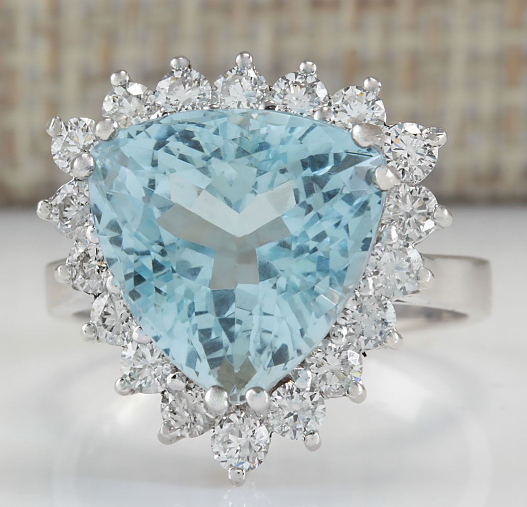 7.12 CTW Natural Aquamarine And Diamond Ring In 18K White Gold