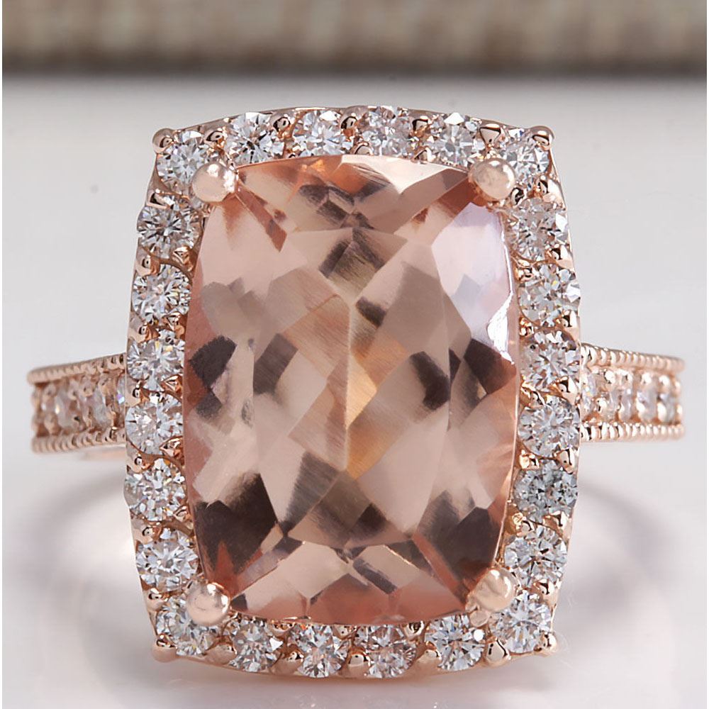 7.12 CTW Natural Peach Morganite And Diamond Ring In 18K Solid Rose Gold