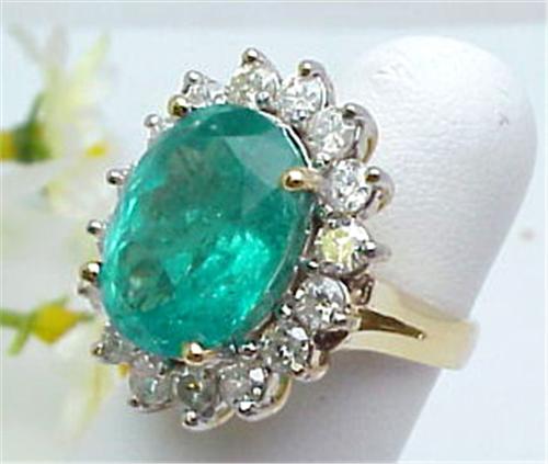 7.12ct Emerald surrounded by 1.49ctw of diamonds, 10.3gr 14kt yellow gold. Diamonds clarity I-1 to I-2 color G-I with AIG cert