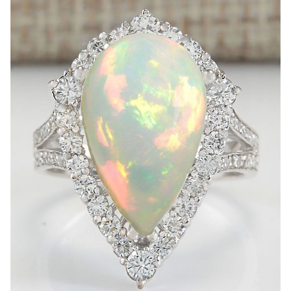 7.13 CTW Natural Opal And Diamond Ring In 14K White Gold