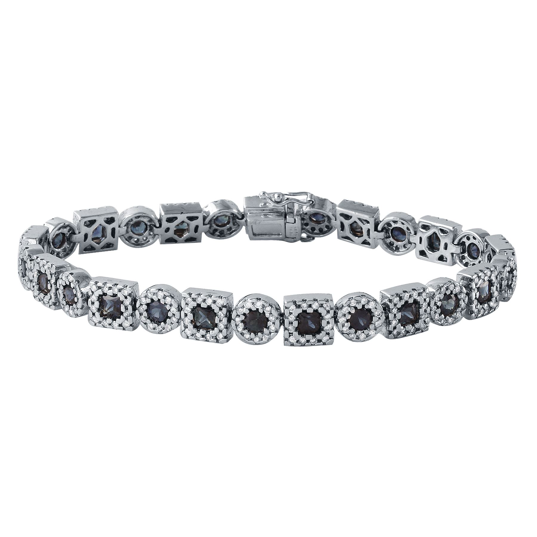 REF-231W4H - JF287674 ---- 7.13 CTW Sapphire & White Round Diamond Bracelet 14K White Gold