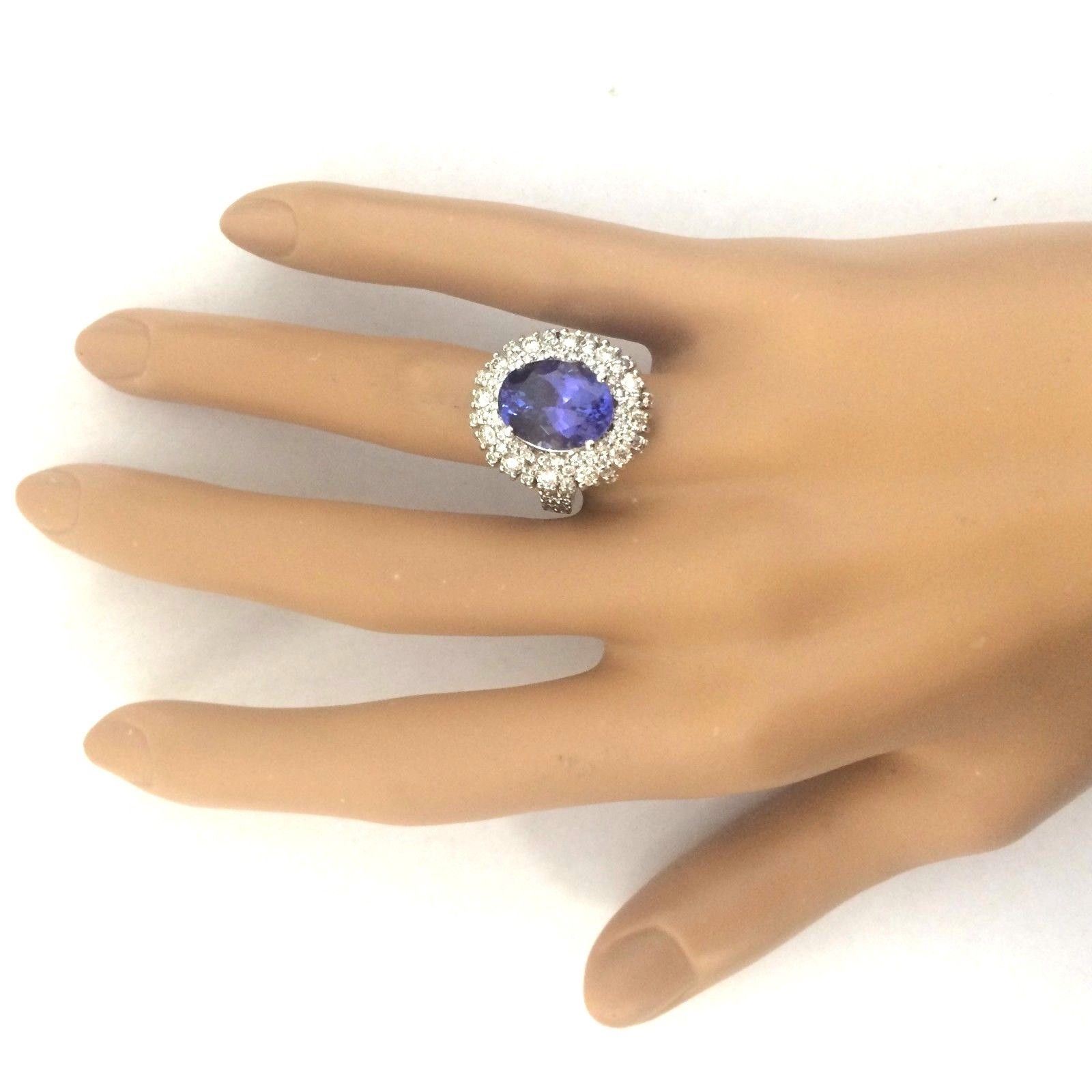 7.14 Carat Natural Tanzanite 18K Solid White Gold Diamond Ring