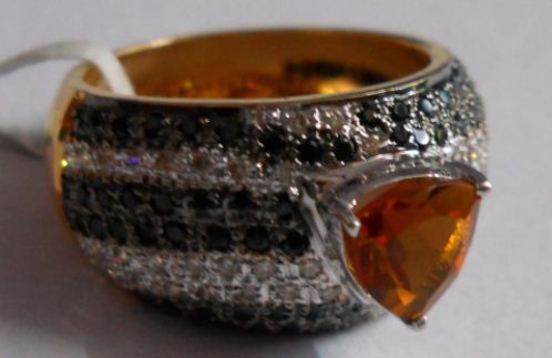 Ring of total weight 7.144g in 14kt 6.59g Gold ,Diamond:0.48 Ctw, Citrine:1.25 Ctw and Black Spinal:1.04 Ctw