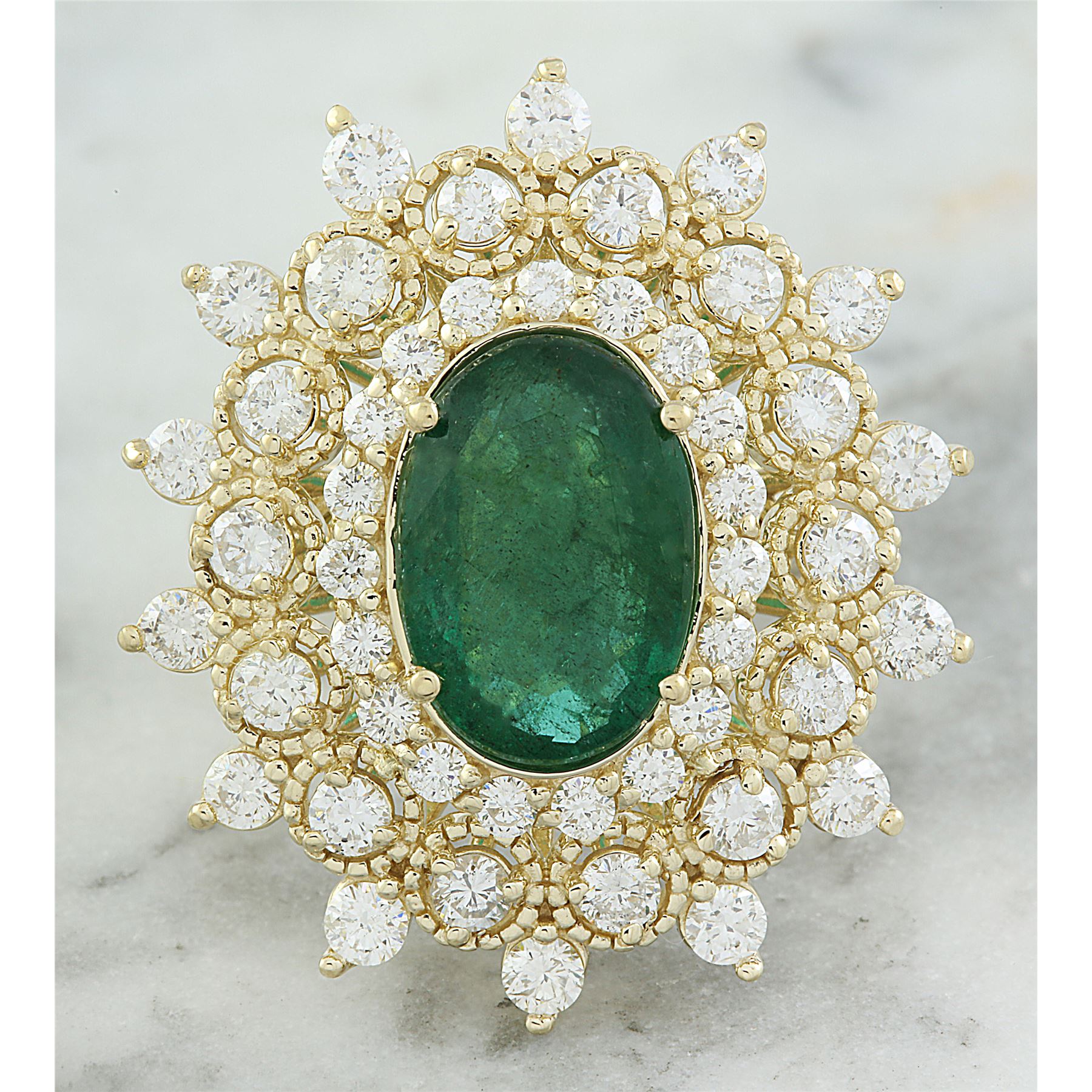 7.15 CTW Emerald 18K Yellow Gold Diamond Ring