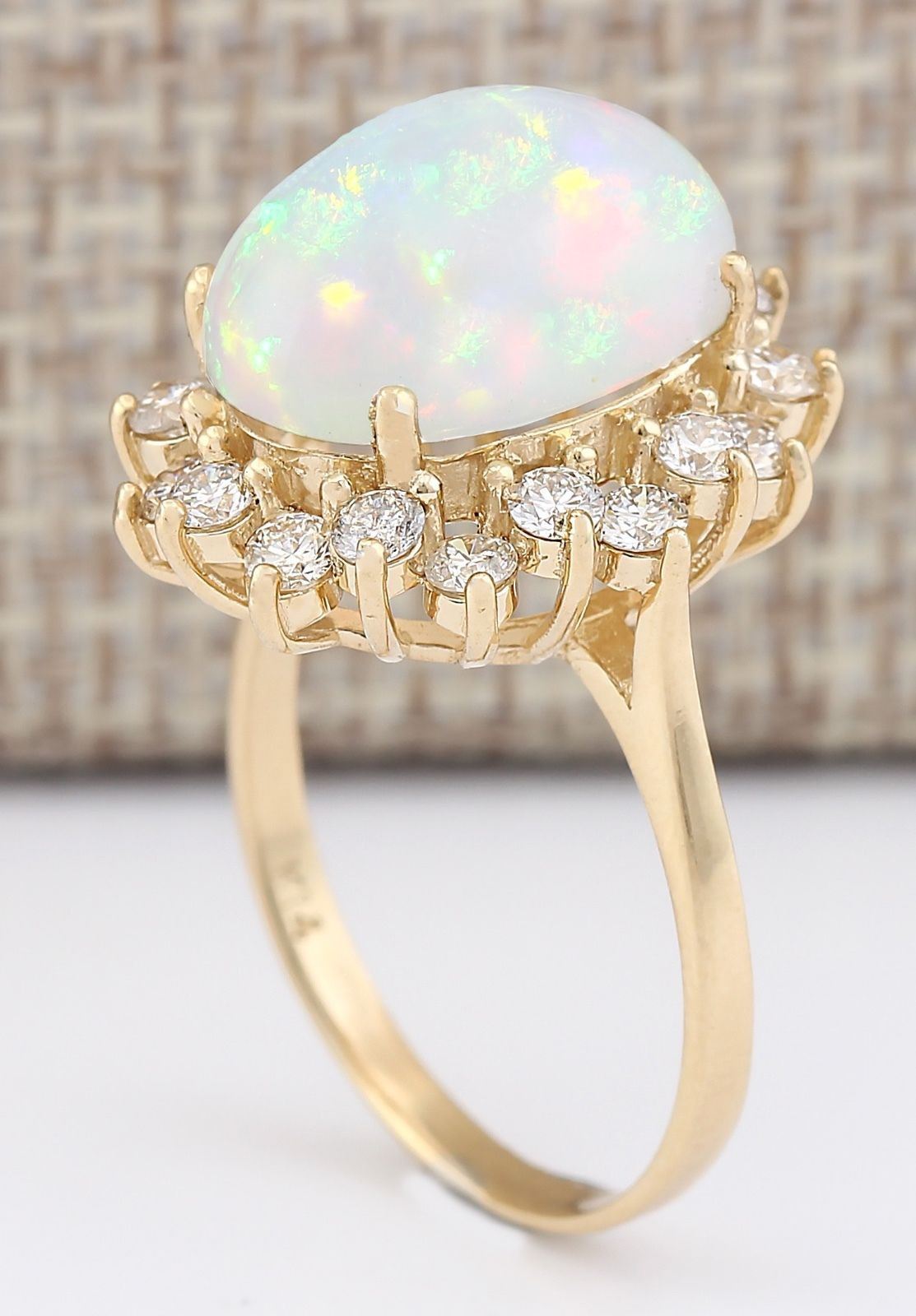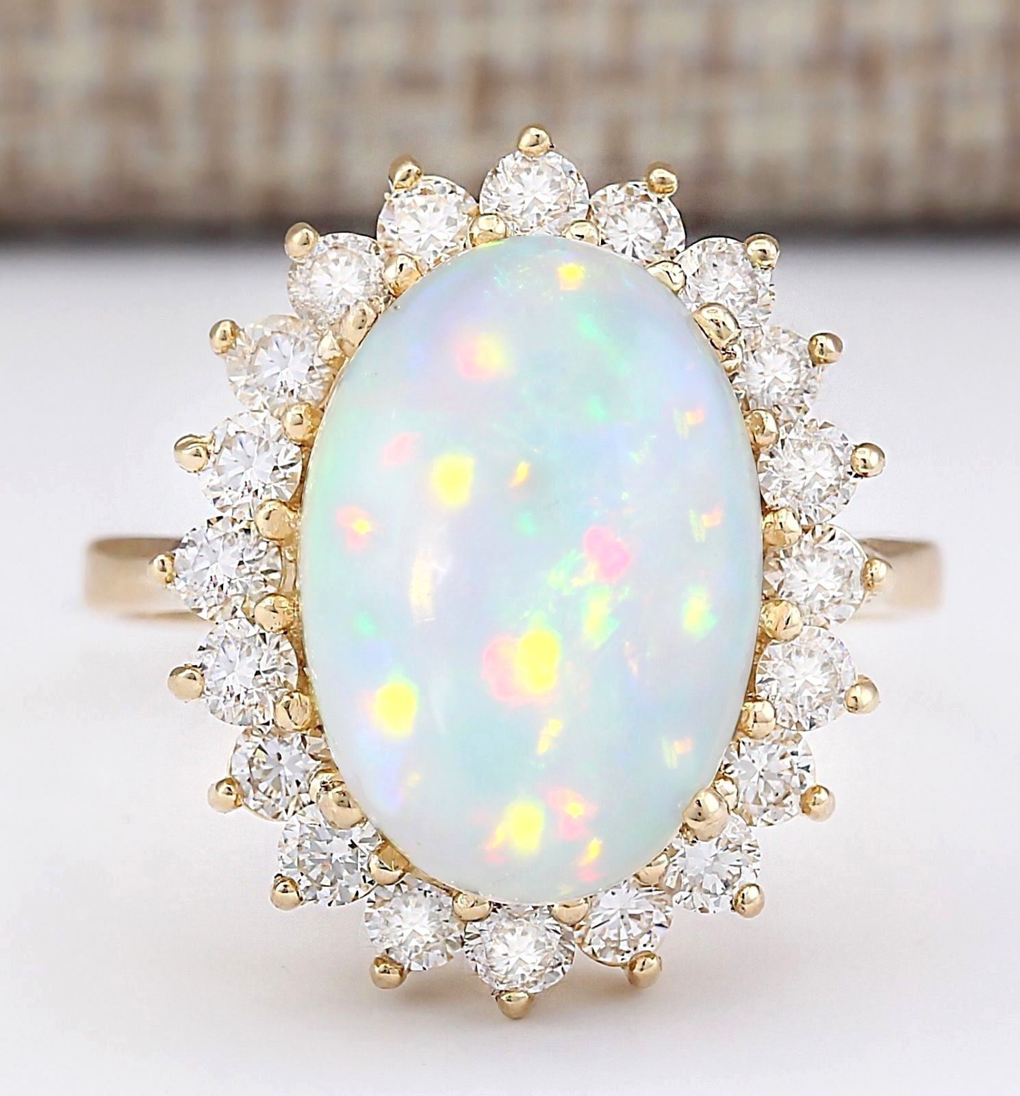 7.15 CTW Natural Opal And Diamond Ring In 18K Yellow Gold