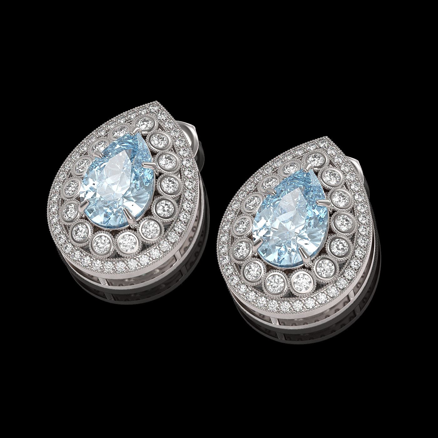 REF-285W8H - SKU: 43184 ---- 7.15 ctw Aquamarine & Diamond Victorian Earrings 14K White Gold