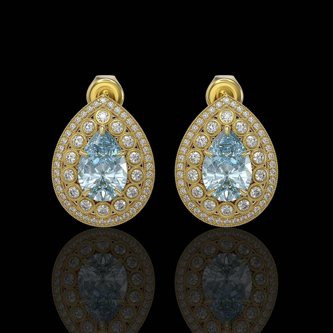 REF-285Y8X - SKU: 43186 ---- 7.15 ctw Aquamarine & Diamond Victorian Earrings 14K Yellow Gold