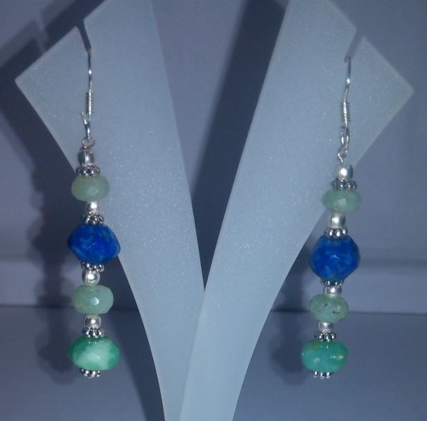7.150g Earring of Lapis and Semi-Precious Gemstone Sterling 925 Silver