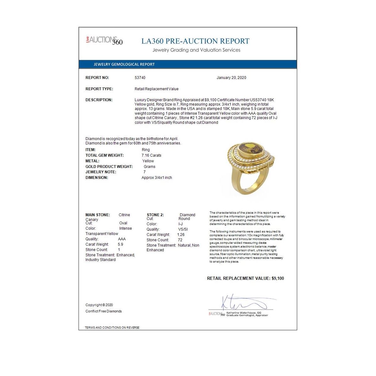 REF-206A9N - SKU: 53740 ---- 7.16 ctw Canary Citrine & Diamond Ring 18K Yellow Gold