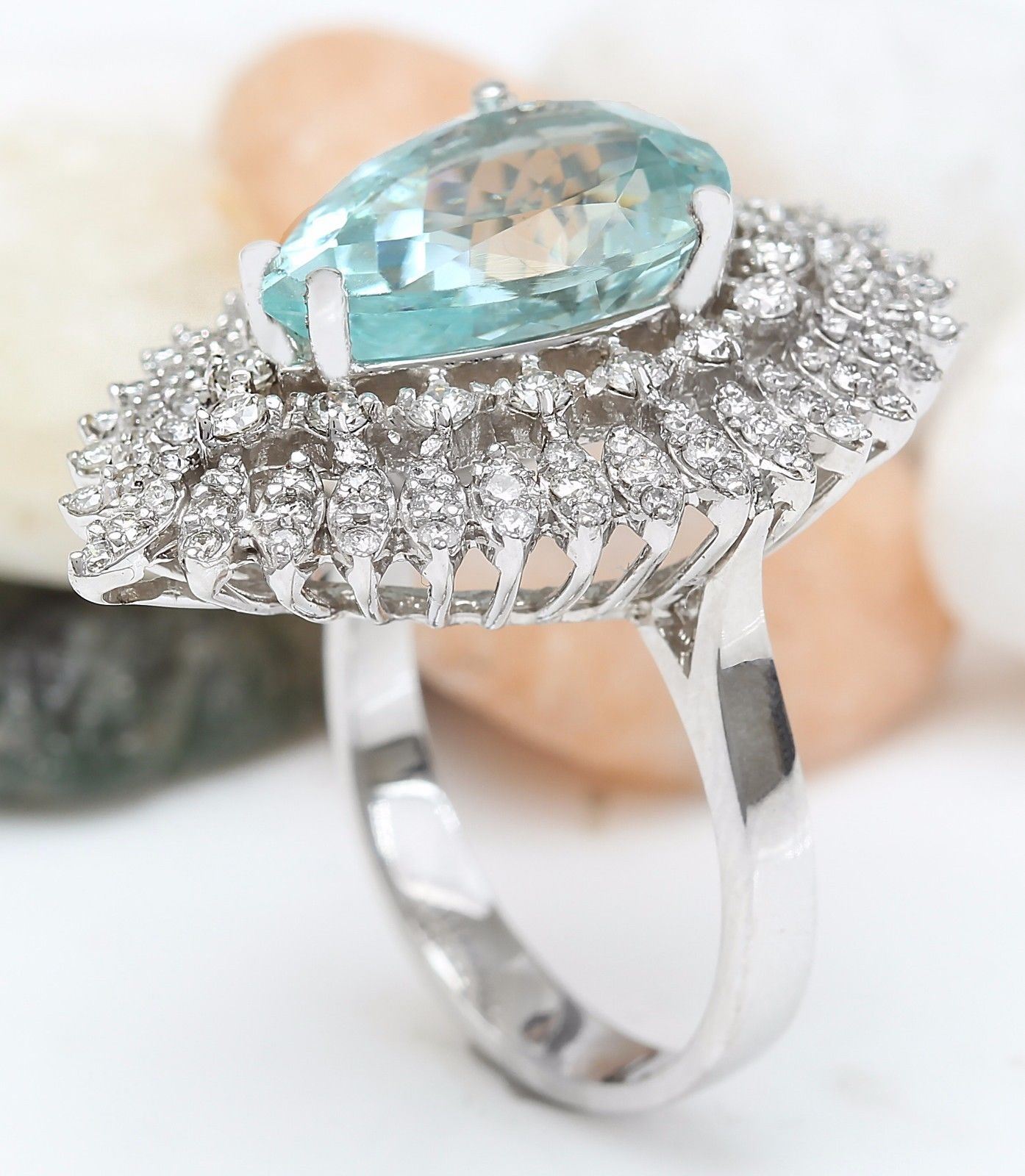 7.18 Carat Natural Aquamarine 18K Solid White Gold Diamond Ring