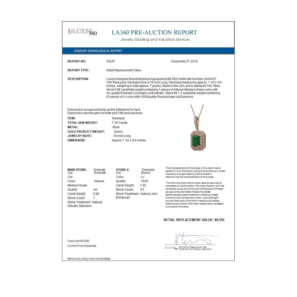 REF-172W8H - SKU: 43437 ---- 7.18 ctw Certified Emerald & Diamond Victorian Necklace 14K Rose Gold