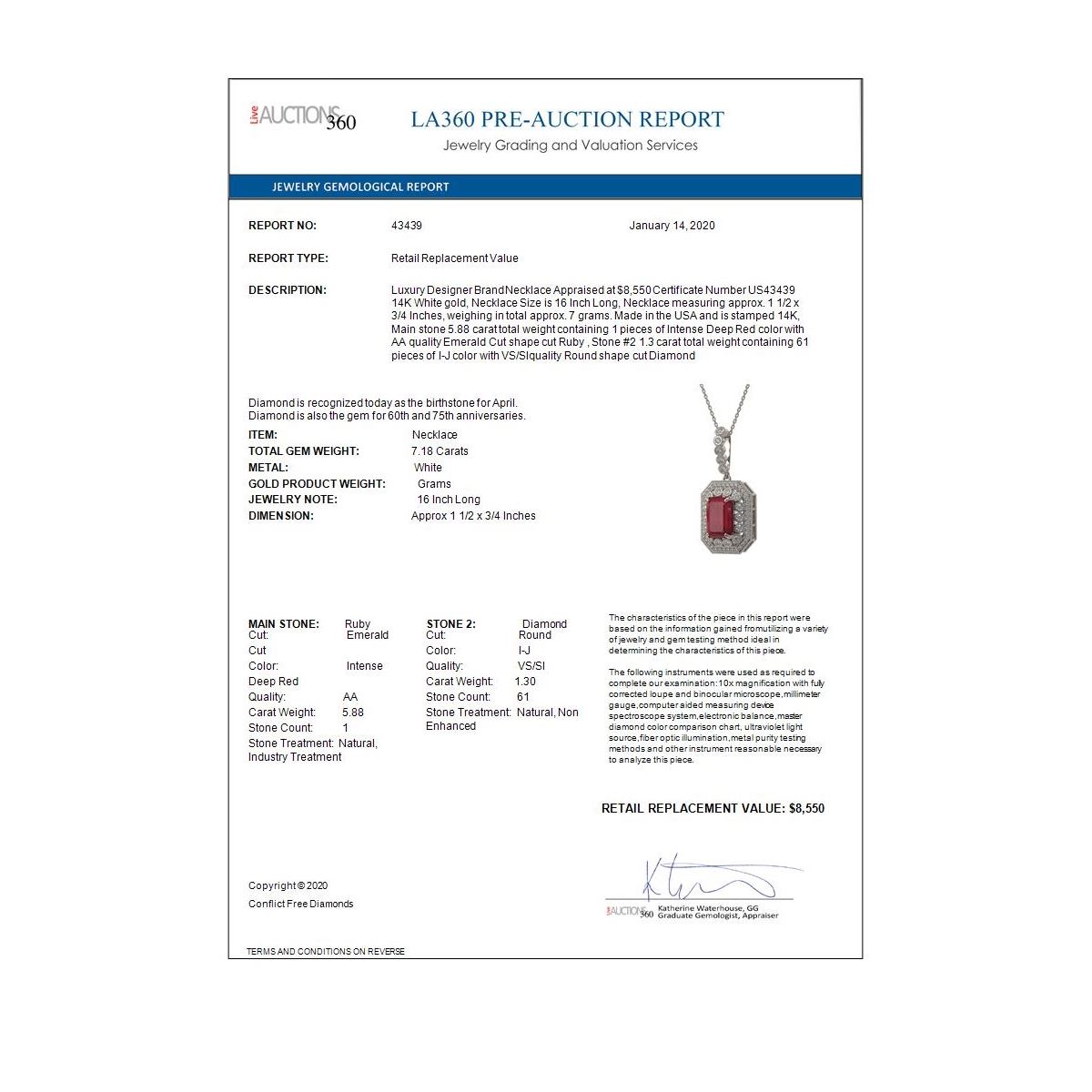 All sales are final, placing a bid is a legally binding obligation. All lots are sold as is, where is, with all the faults, imperfections, omissions and errors in the written description, estimates, appraisals, graphics and photography. USJL is not responsible for any errors or omissions in the description, graphics or photography provided or in the bidding software. Due diligence to verify the condition and description of a lot is the sole responsibility of the Bidder prior to placing any bid. Returns may only be made with the advance written authorization of USJL and are in USJL's sole discretion to approve. To request a return you must provide a written request fully explaining the basis for the return no later than 4 days after your receipt of the lot. Under no circumstances will any amounts other than the winning bid amount be refunded. A restocking charge of 19% of the full invoice amount may apply in USJL 's sole discretion. Any allowed returns must be received in exactly the same condition as when originally shipped to Buyer, or they will be returned to buyer at Buyer's cost. Any unauthorized returns will be refused. DELIVERY REFUSAL OF ITEMS SHIPPED BY US JEWELRY LIQUIDATION TO THE BIDDER CONSTITUTES AN UNAUTHORIZED RETURN IN DIRECT VIOLATION OF THESE GENERAL TERMS AND CONDITIONS.