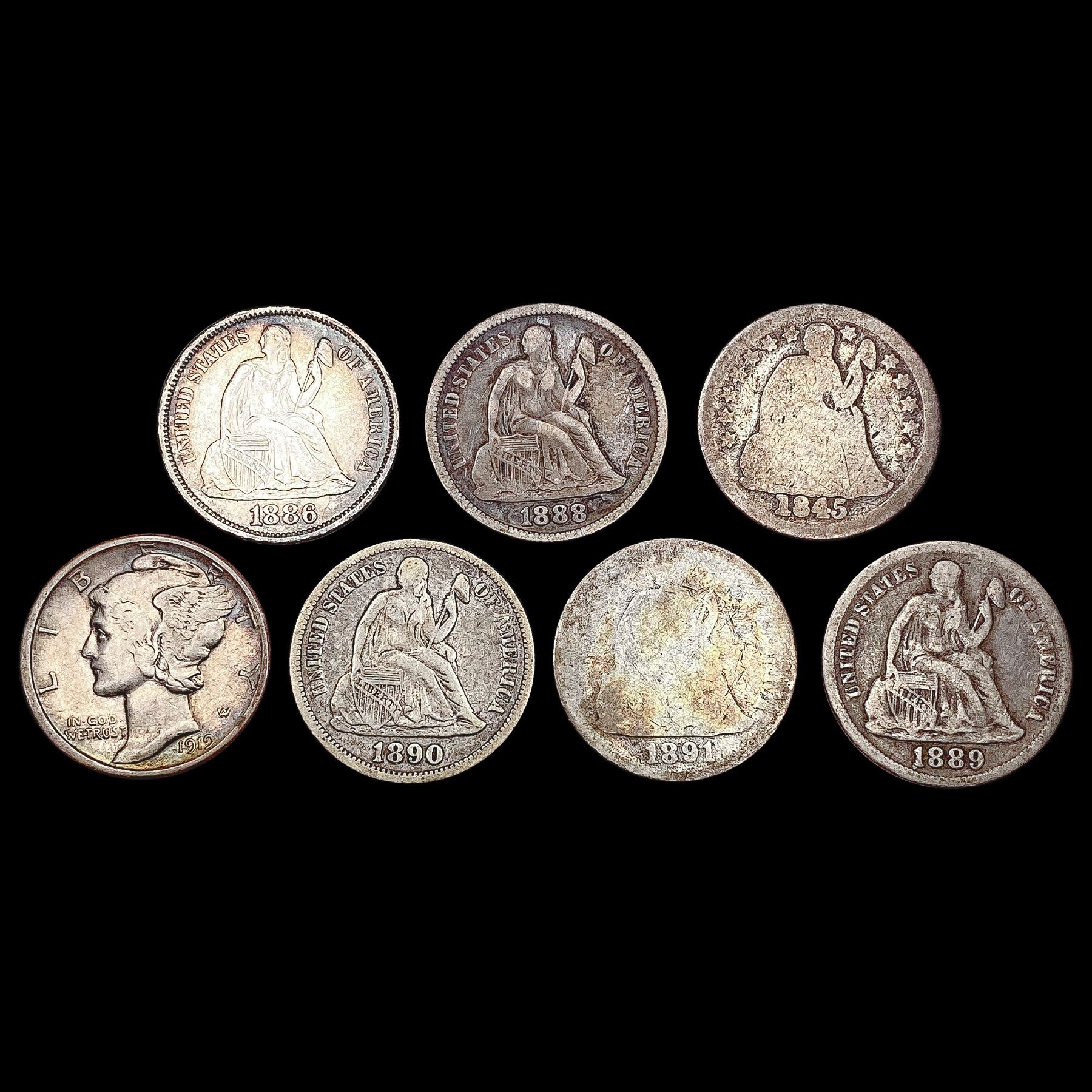 [7] 1845-1919-D Varied Silver Dimes HIGH GRADE