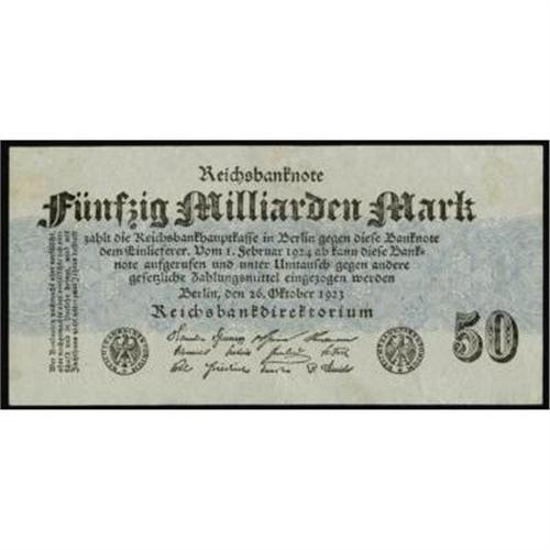 <style type="text/css"> body, td, th { font-family: Arial, Helvetica, sans-serif; font-size: 12px; color: #482424; margin: 0px; padding: 0px; } #header { background-image: url(http://www.bowersandmerena.com/ebay/images/template_v3_01.gif); clear: both; background-color: #590303; border-top-width: 2px; border-top-style: solid; border-top-color: #B38C4F; } #header #header_wrapper { height: 75px; clear: both; width: 800px; margin-right: auto; margin-left: auto; background-image: url(http://www.bowersandmerena.com/ebay/images/template_v3_03.gif); background-repeat: no-repeat; background-position: right; color: #F3EDCC; } #header #header_wrapper #header_logo { float: left; height: 75px; width: 444px; background-image: url(http://www.bowersandmerena.com/ebay/images/template_v3_02.gif); background-repeat: no-repeat; font-size: 10px; text-transform: capitalize; color: #B38C4F; } #header #header_wrapper #header_right { float: left; height: 75px; width: 356px; text-align: right; } #header #header_wrapper #header_right #headerLoginBtn { margin-bottom: 30px; } #header #header_wrapper #header_right input#txtSearch { color: #B49056; border: 1px solid #B49056; width: 175px; padding-top: 3px; padding-right: 3px; padding-bottom: 4px; padding-left: 3px; } #nav { height: 37px; background-image: url(http://www.bowersandmerena.com/ebay/images/template_v3_05.gif); clear: both; } #nav #nav_wrapper { height: 35px; width: 800px; margin-right: auto; margin-left: auto; border-left-width: 1px; border-left-style: solid; border-left-color: #B38C4F; } #nav #nav_wrapper a { padding-right: 15px; padding-left: 15px; border-right-width: 1px; border-right-style: solid; border-right-color: #B38C4F; height: 25px; padding-top: 10px; display: block; float: left; text-decoration: none; font-weight: bold; color: #5D0303; } #nav #nav_wrapper a:hover { color: #B38C4F; } #nav #nav_wrapper #search { float: right; padding-top: 7px; } #nav #nav_wrapper #search #txtSearch { font-family: Arial, Helvetica, sans-serif; font-size: 10px; text-transform: uppercase; color: #D2AE75; border: 1px solid #B38C4F; padding: 3px; } #content_bgd { background-image: url(http://www.bowersandmerena.com/ebay/images/template_v3_09.gif); background-repeat: repeat-y; background-position: center; padding-top: 15px; padding-bottom: 15px; background-color: #FBFBDB; } #content_wrapper { clear: both; height: auto; width: 800px; margin-right: auto; margin-left: auto; } .LotDetailWhite { line-height:normal; font-size:13px; font-family: arial,helvetica,sans-serif; color: White; font-weight: bold; } .LotDetailInformation { line-height:normal; font-size: 13px; font-family: arial,helvetica,sans-serif; } .LotDetailMessage { line-height:normal; font-size: 13px; font-family: arial,helvetica,sans-serif; color: red; } } tr.HeaderAuctionTitle td { color: #000000; font-weight: bold; padding: 2px; background-image: url(http://www.bowersandmerena.com/ebay/images/template_v3_05.gif); background-repeat: repeat-x; border-bottom-width: 1px; border-bottom-style: solid; border-bottom-color: #B38C4F; } table.AuctionSummary a, table.AuctionSummary a:link, table.AuctionSummary a:visited { color: #0000FF; text-decoration: none; } } td.tableHeaderLeft { border-left-width: 1px; border-left-style: solid; border-left-color: #B38C4F; } td.tableHeaderRight { border-right-width: 1px; border-right-style: solid; border-right-color: #B38C4F; } td.tableCellMiddle { border-left-width: 1px; border-left-style: solid; border-left-color: #B38C4F; border-right-width: 1px; border-right-style: solid; border-right-color: #B38C4F; padding: 5px; } tr.footer td { border-top-width: 1px; border-top-style: solid; border-top-color: #B38C4F; } </style> </head> <body> <div id="header"> <div id="header_wrapper"> <div id="header_logo"> </div> <div id="header_right"> </div> </div> </div> <div id="nav"> <div id="nav_wrapper"> <a href="http://www.bowersandmerena.com">Our eBayLive Auctions</a> <a href="#PaymentInfo">Payment Information</a> <a href="#ShippingInfo">Shipping Information</a> <a href="#About">About Bowers and Merena</a> </div> </div> <div id="content_bgd"> <div id="content_wrapper"> <table width="100%" border="0" cellpadding="5" cellspacing="0" class="AuctionSummary"> <tbody> <tr class="HeaderAuctionTitle" style="height: 25px;"> <td align="left" class="tableHeaderLeft" > </td> <td align="center" class="tableHeaderRight"> <span style="font-size: large;">Lot #2771. Germany. Lot of (7) 1923 Mixed Denominations. Republic Treasury Notes. Ninth Issue. VF/Unc.</span> </td> </tr> <tr> <td colspan="3" class="tableCellMiddle"> P-125, 126a, b, 127a, b. With every denomination represented besides the scarce 100 Billionen Mark note this lot of seven notes illustrates every other variety for the ninth issue notes. The 50 Milliarden note is shown both in the "a" & "b" varieties and grade VF and Unc. A single Pick-126 is here which grades VF. A green-tinted 500 Milliarden Mark note with the tint at the right denoting the "a" type is in a Extremely Fine grade with some staple holes at the left bottom. The last three notes are all the blue or violet tinted "b" variety of Pick-127 with two blue and one violet with a couple being Very Fine and another an AU.