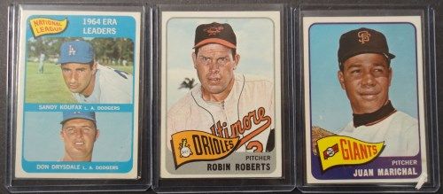 #8 Koufax/Drysdale EX+, #15 Robin Roberts EX+, #50 Juan Marichal NM, #150 Brooks Robinson EX, #153 Norm Cash NM, #187 Casey Stengel EM & #556 Red Schoendienst VG. Book $125.00. Est. Value $65.00 - $85.00.