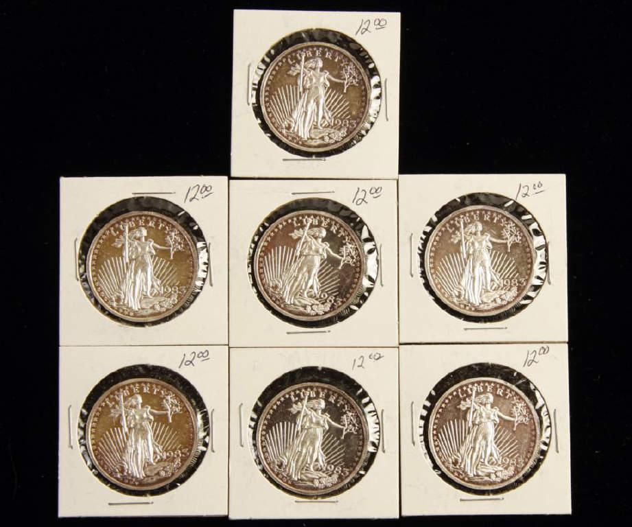 (7)1983 US Liberty Silver Dollars 1/2 Troy Ounce each, all in coin sleeves.
