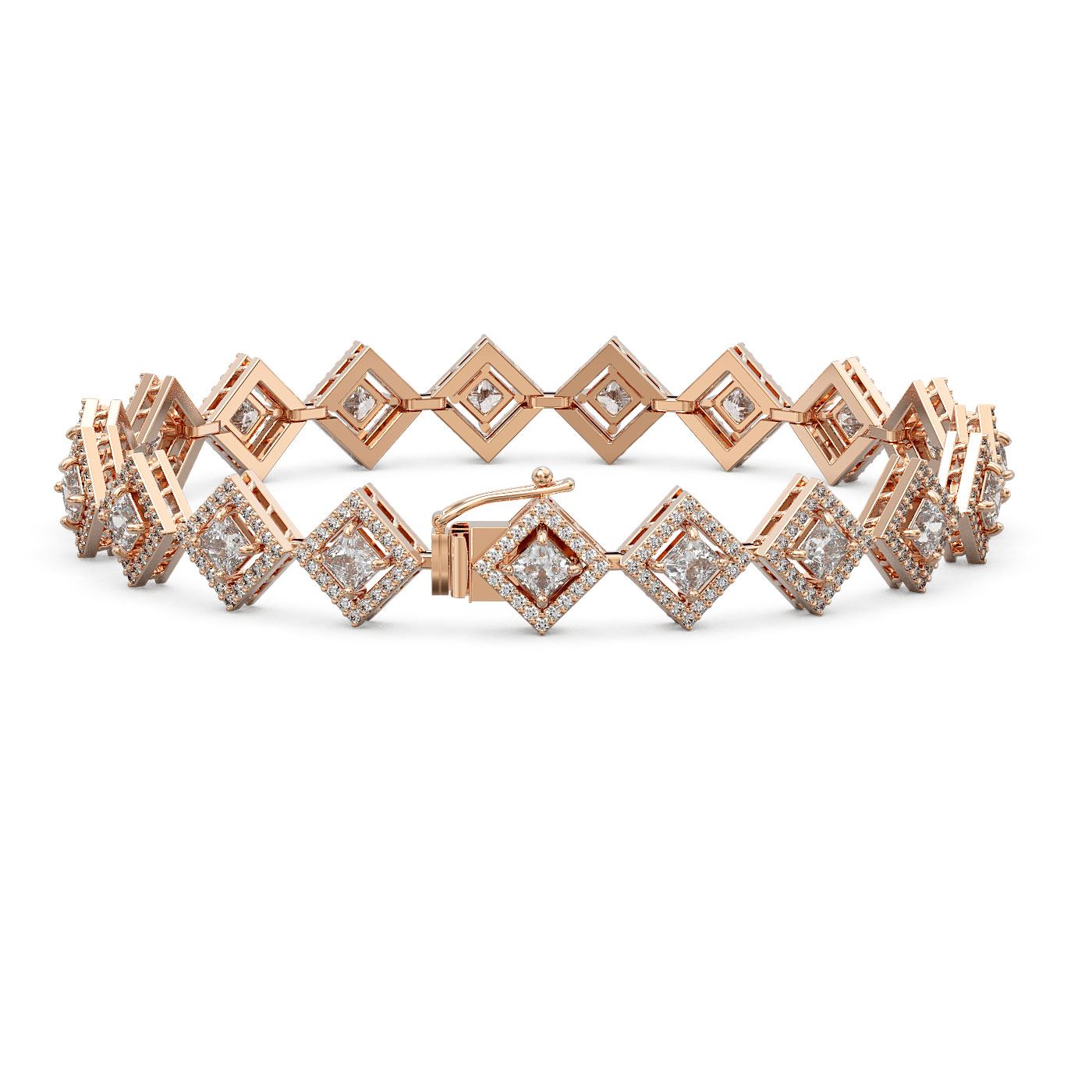 SKU: 42969 ---- 7.2 ctw Princess Cut Diamond Micro Pave Bracelet 18K Rose Gold
