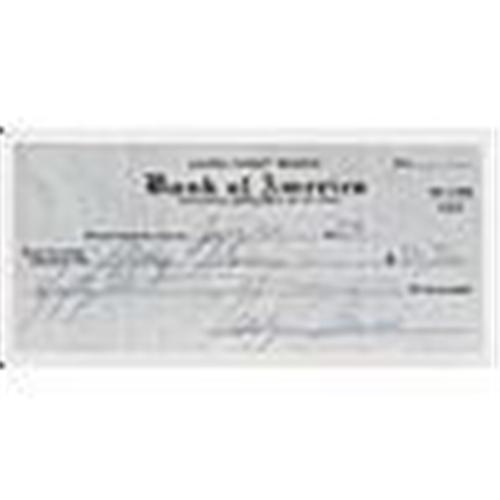 Vintage "Bank of America" check dated July 20, 1953, signed in blue ballpoint by Marilyn Monroe. Check is for $50.00, three folds that have flattened out nicely on the front, bank stampings do not affect the signature. Check is EXMT overall with signature that grades an 8 to 9. Accompanied by a LOA from JSA.