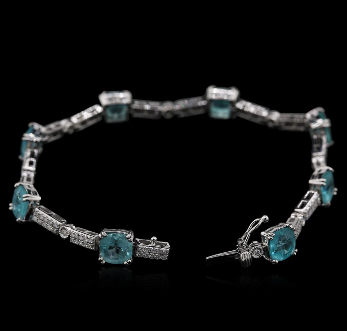 One bracelet featuring: 14KT white gold weighing 9.25 grams containing 8 apatite with a total weight of 7.20ct and diamonds with a total weight of 0.83ct.
