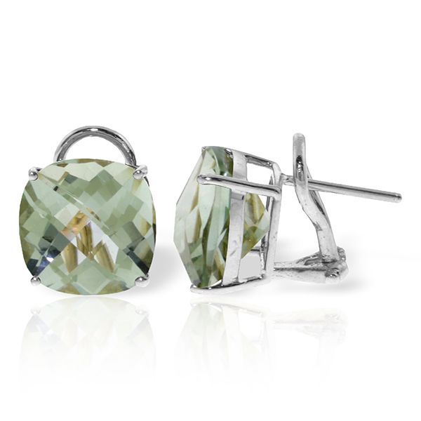 Amazing cut and color and a unique setting make these 14k solid gold French clip earrings with green amethyst look absolutely radiant and beautiful. While solitaire studs are always in style, these earrings go to the next level with the addition of gorgeous green amethyst stones. 7.20 carats make up each pair, which are cut beautifully in the exotic cushion cut which is purely luxurious. The French clips and settings look stunning and sophisticated and are also made lavishly of 14k yellow, white, or rose gold. These earrings make a unique birthstone pair for those born in the month of February. This jewelry piece is shipped in an elegant black jewelry box and is accompanied by an Appraisal Certificate. Retail price: $1906