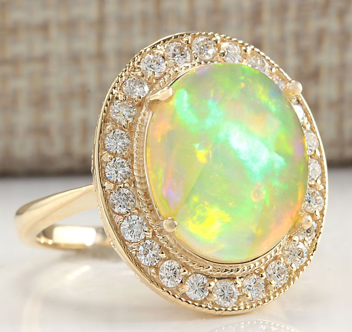 7.21 CTW Natural Opal And Diamond Ring In 18K Solid Yellow Gold