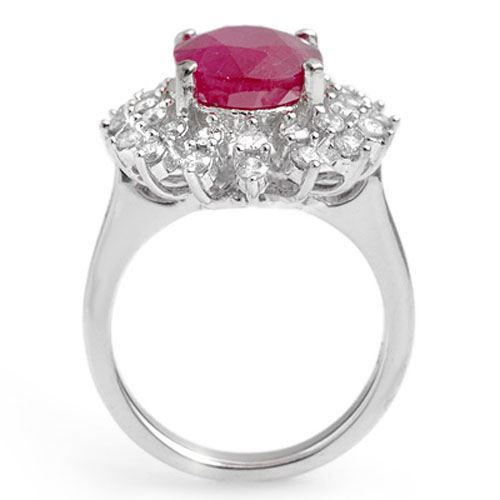 7.21 CTW Ruby & Diamond Ring 18K White Gold ---- Luxury Designer Brand Ring Appraised Retail Price at $12,000 ---- SKU Number US13211 18k White gold Ring Size is 6.5, Ring measuring approx. 3/4" x 5/8" , weighing in total approx. 9 grams. Made in the USA and is stamped 18k, Main stone 6.03 carat total weight containing 1 pieces of Mid-Opaque-Deep Red color with AAA quality Oval shape cut Ruby , Stone #2 1.18 carat total weight containing 32 pieces of H-I color with VS/SI quality Round shape cut