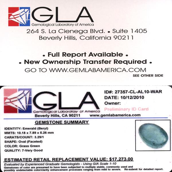 In the event that an item is listed as having an "Appraisal Estimate", this represents WAR's in-house estimate of what the item would appraise for at Gem Labs of America (GLA), Beverly Hills, CA. Actual appraisal of the item at GLA is the responsibility of the Bidder, however WAR may assist, at its discretion, in related logistics. WAR does provide the following guaranty (the "WAR 5% Loose Gem Guaranty") relative to Appraisal Estimate values of LOOSE GEMS: In the event that the GLA appraised value is not such an amount that the Bidder's winning bid is five percent (5%) or less of the GLA appraised value, then WAR, in it's discretion, will either refund such amount of the Bidder's winning bid and related charges so that the winning bid equals five percent (5%) of the GLA appraised value, or, instead issue a full refund on the item and reimburse the Bidder for the GLA appraisal fees. The Bidder may also opt to retain the item, in which case the WAR 5% Gem Guaranty shall not apply relative to the particular item.