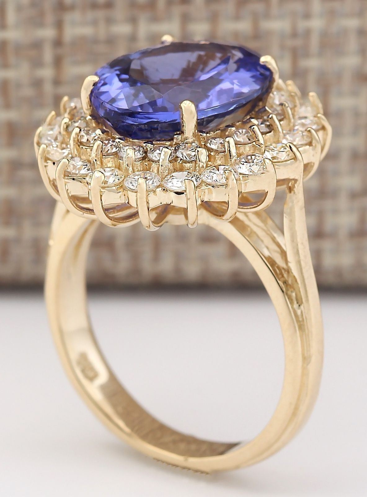 7.22 CTW Natural Tanzanite And Diamond Ring In 18K Yellow Gold