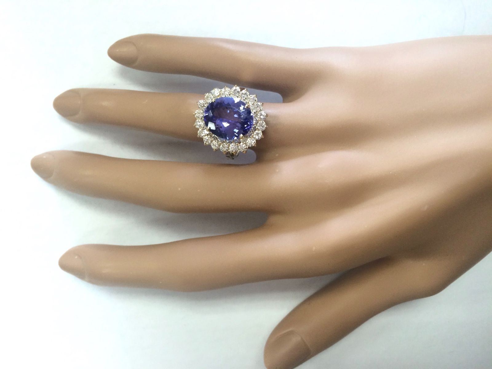 7.22 CTW Natural Tanzanite And Diamond Ring In 18K Yellow Gold