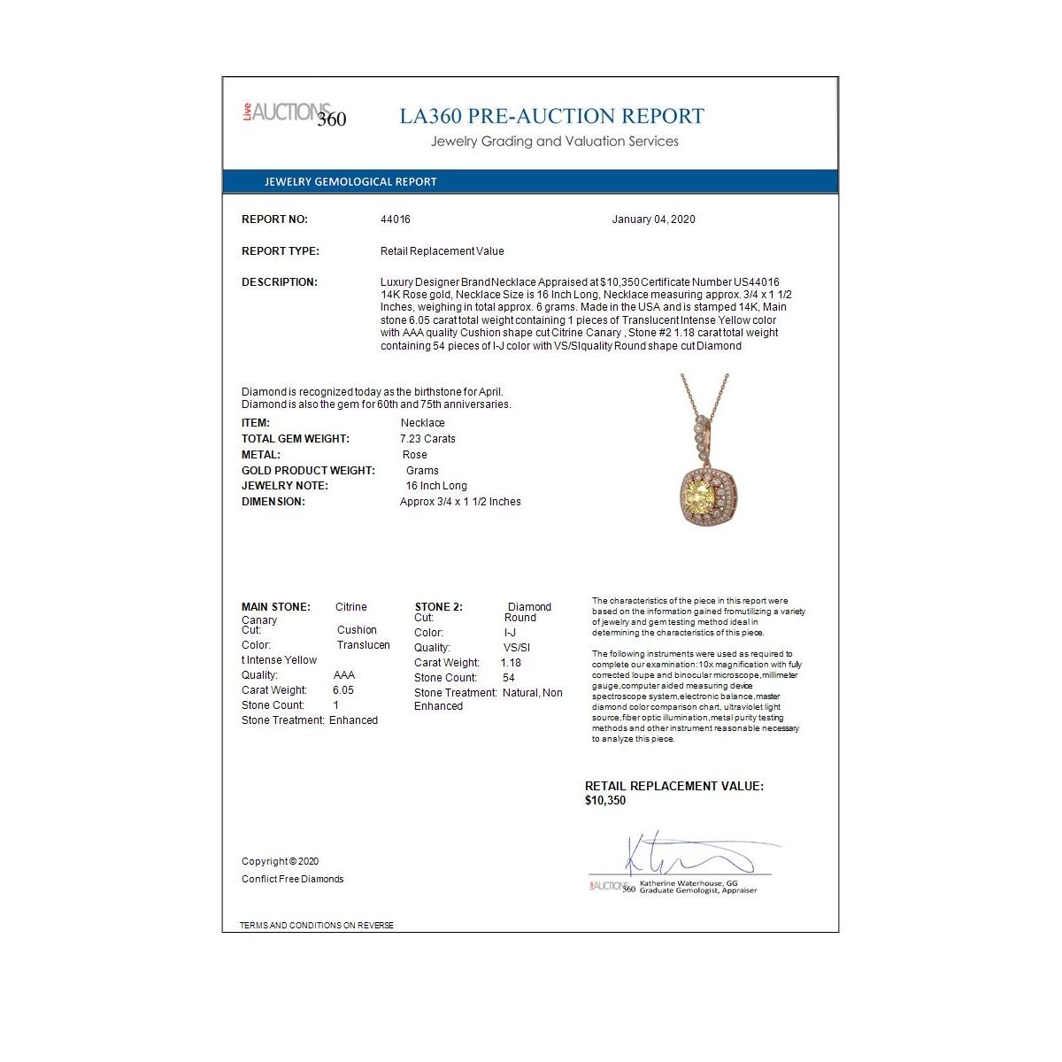 REF-209H3R - SKU: 44016 ---- 7.23 ctw Canary Citrine & Diamond Victorian Necklace 14K Rose Gold