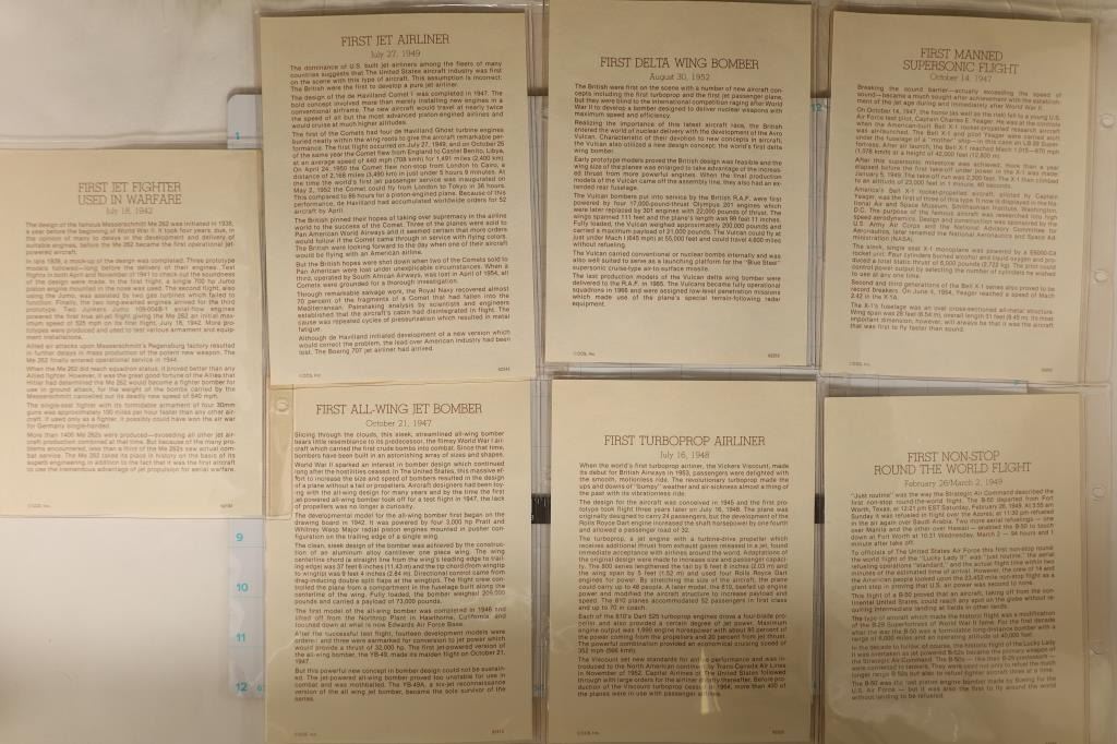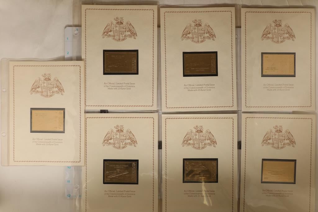 THE COMMONWEALTH OF DOMINICA. EACH STAMP IS 2 1/4" X 1 1/2". ALL ARE AIRPLANE THEMED ON INFO CARD. IN PLASTIC SLEEVES