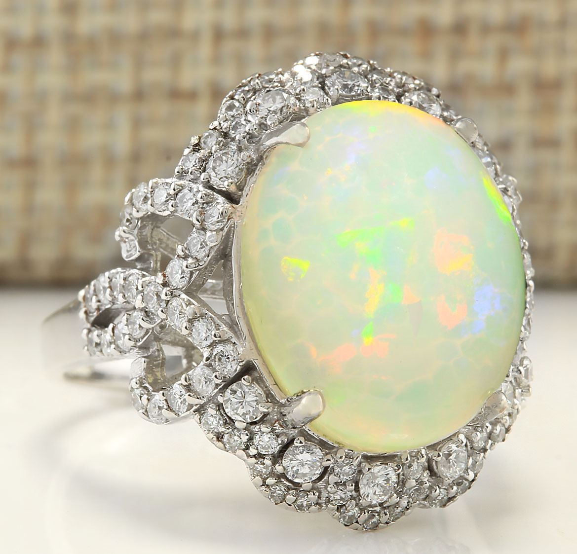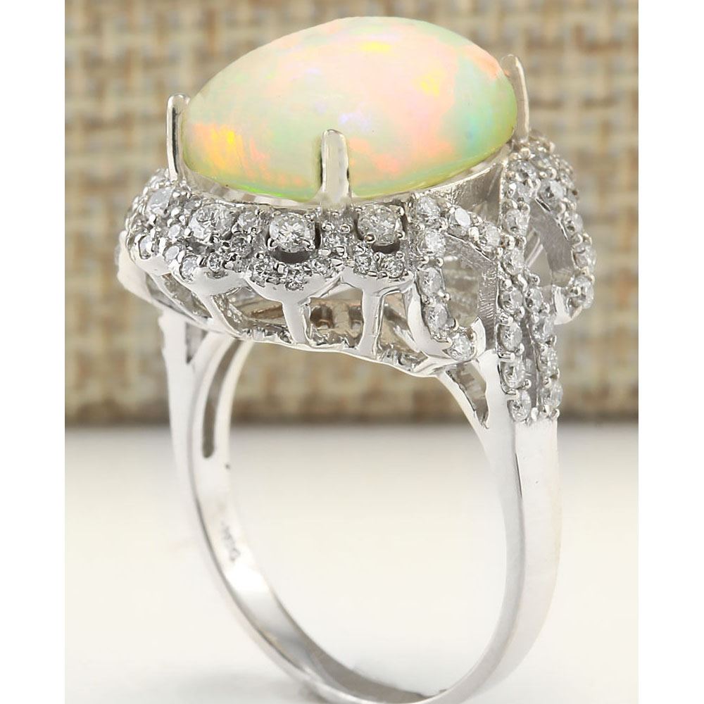 7.24 CTW Natural Opal And Diamond Ring In 14K White Gold