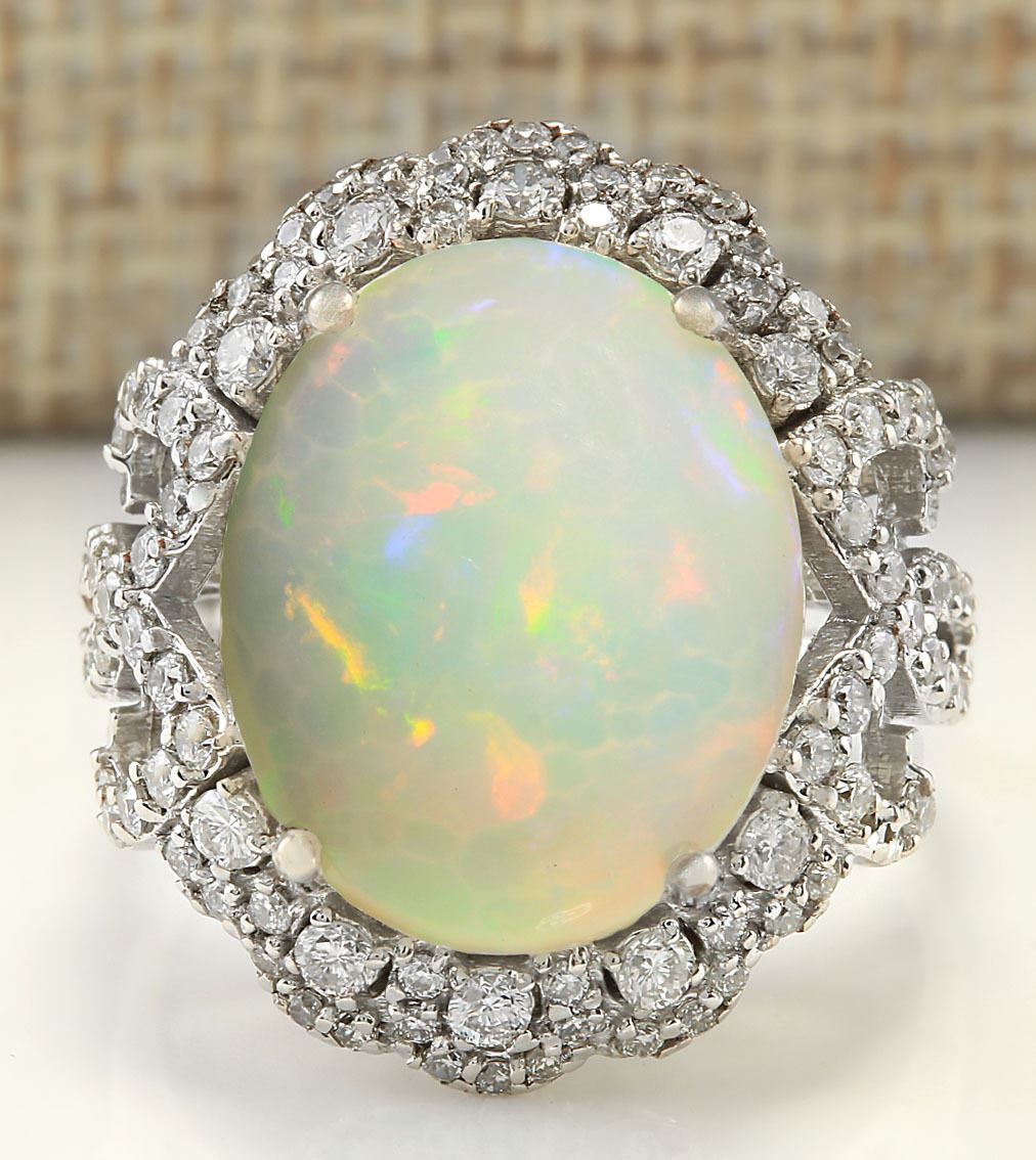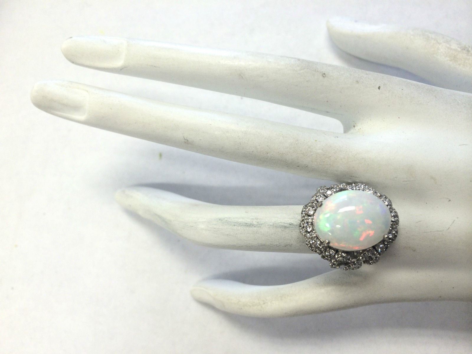 7.24 CTW Natural Opal And Diamond Ring In 18K White Gold