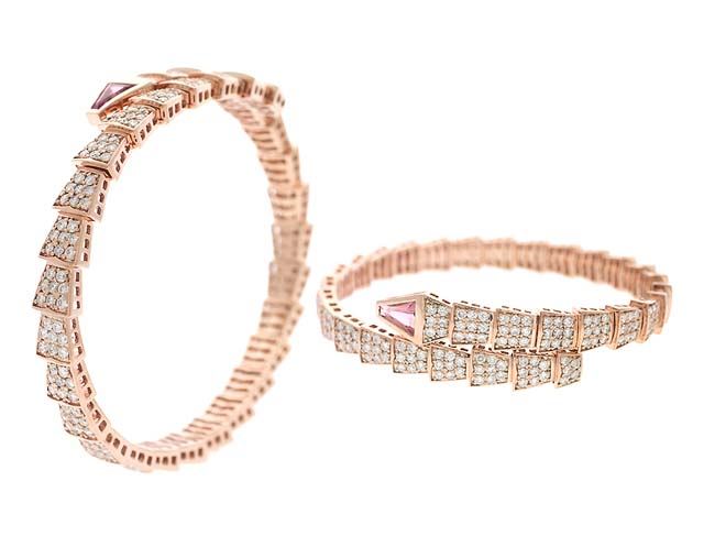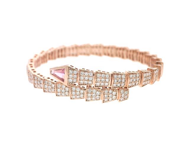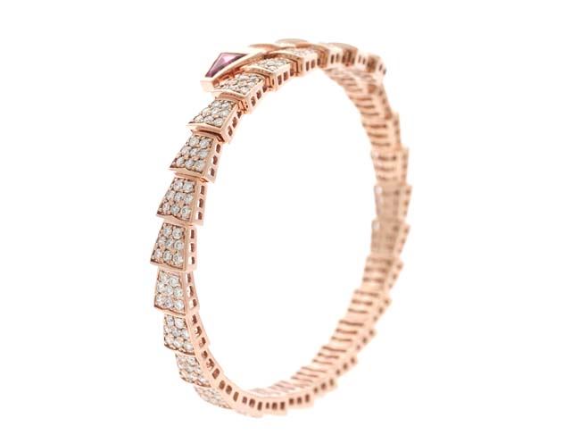 18k Gold WHITE DIAMOND AND TOURMALINE SERPENT BANGLE/Diamond Count 1:263/Diamond Count 1 TCW:6.26/Diamond Color & Clarity:G-H/SI1-SI3/Diamond Count 2:/Diamond Count 2 TCW:/Diamond Color & Clarity:/Diamond Count 3:/Diamond Count 3 TCW:/Gemstone Count 1:1/Gemstone Count 1 TCW:0.98/Dimension:/Metal Type:18k Gold ROSE GOLD/Weight Gram:45.52/Weight Gram:/Gross Weight:47.79