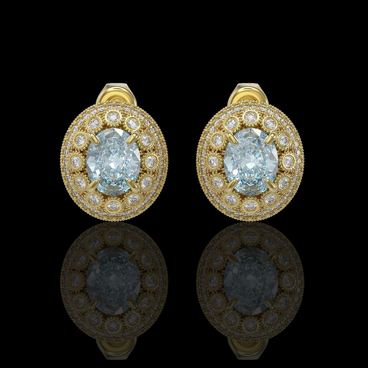 REF-221F6M - SKU: 43642 ---- 7.24 ctw Aquamarine & Diamond Victorian Earrings 14K Yellow Gold