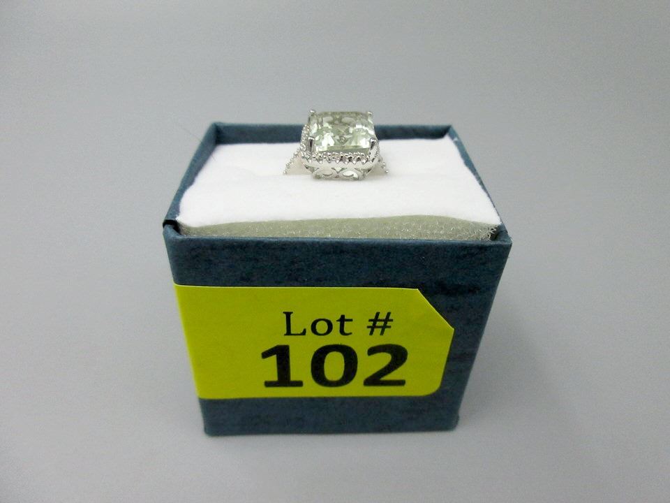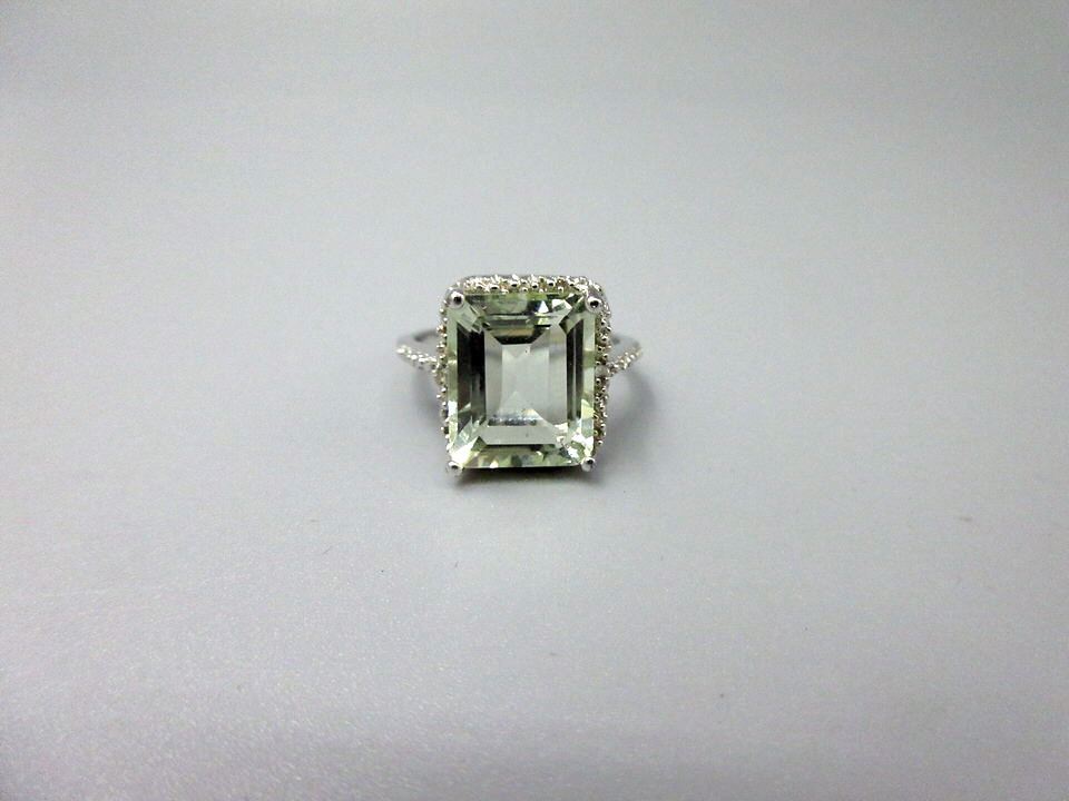Sterling silver. Emerald cut VS clarity amethysts with 2 side diamonds. Includes $425 certificate.