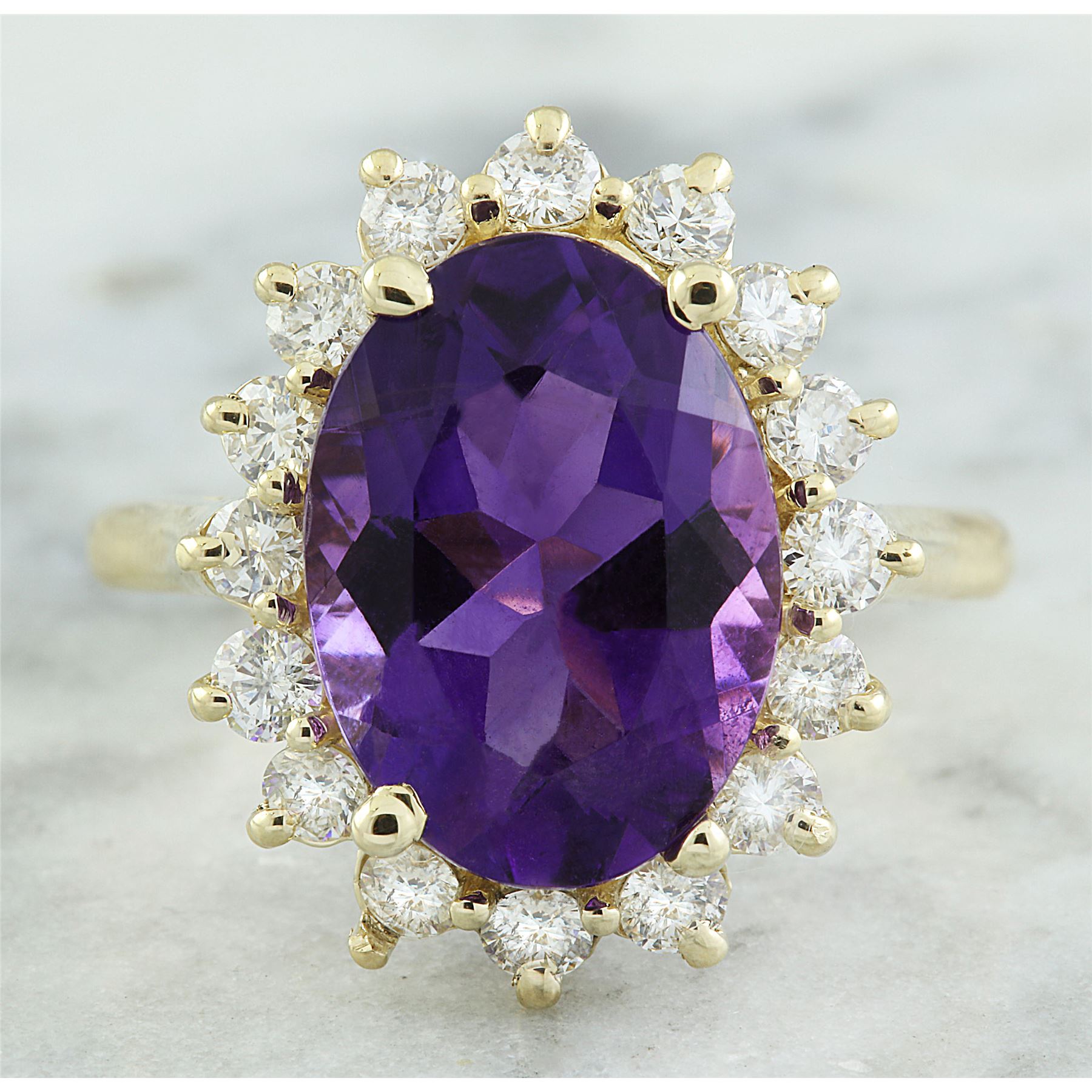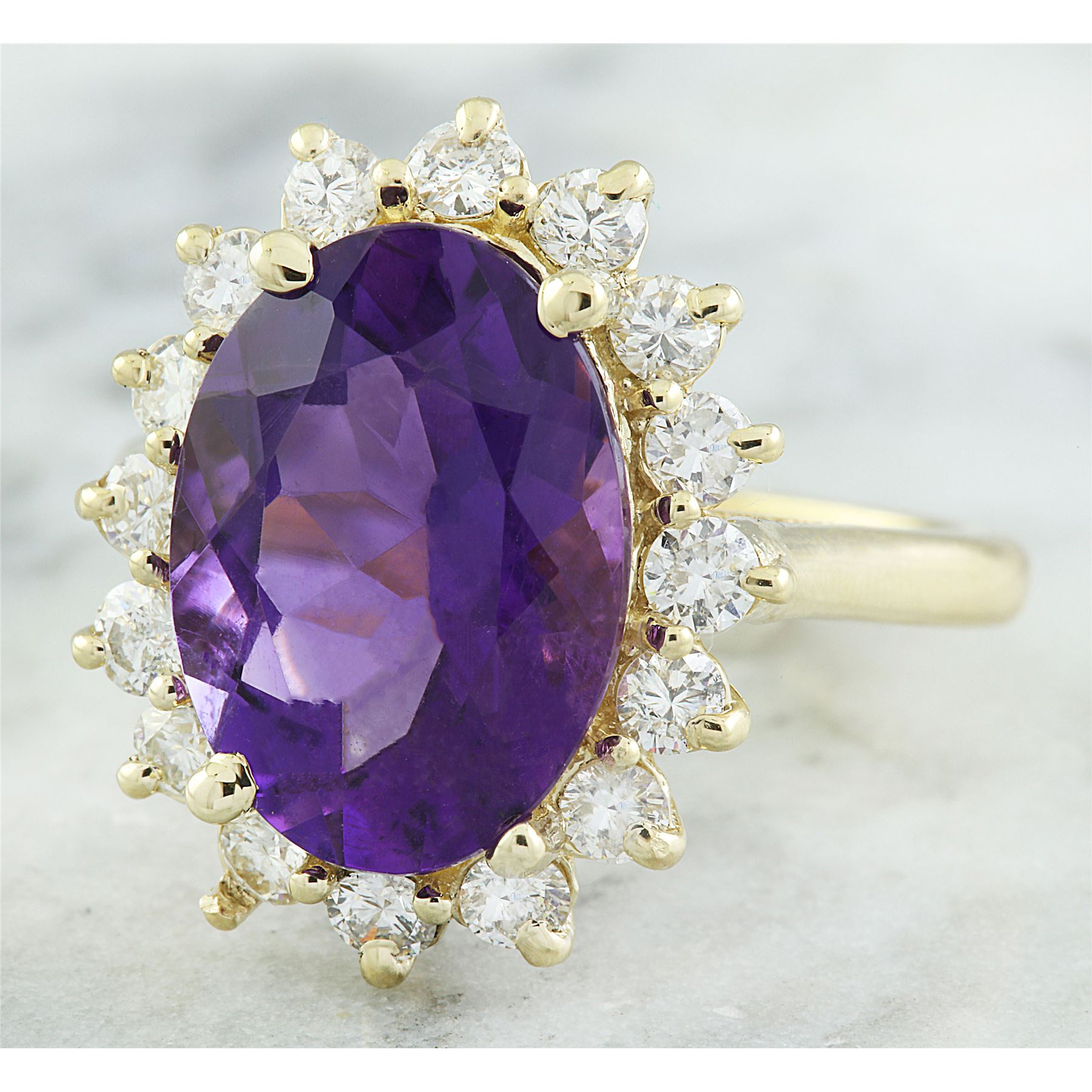 7.26 CTW Amethyst 14K Yellow Gold Diamond Ring