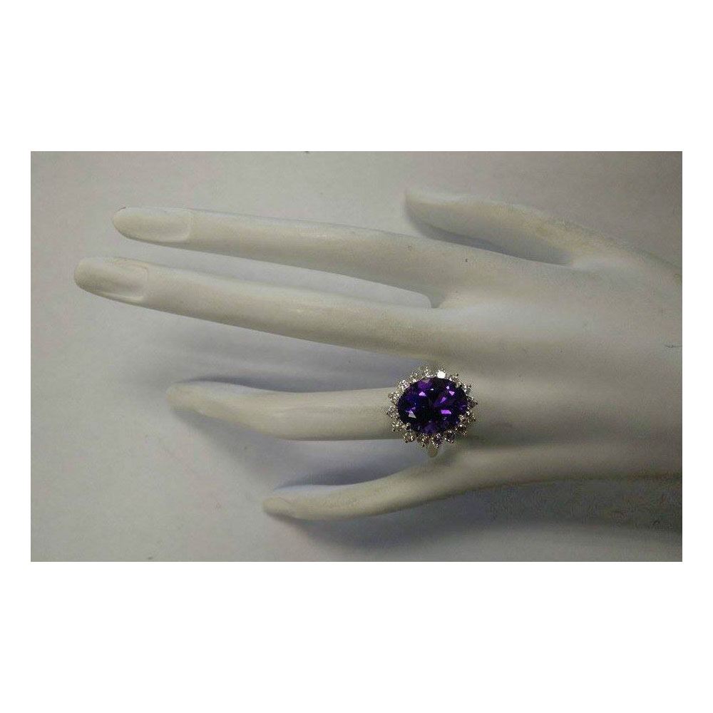 7.26 CTW Natural Amethyst And Diamond Ring In 18K Solid Yellow Gold