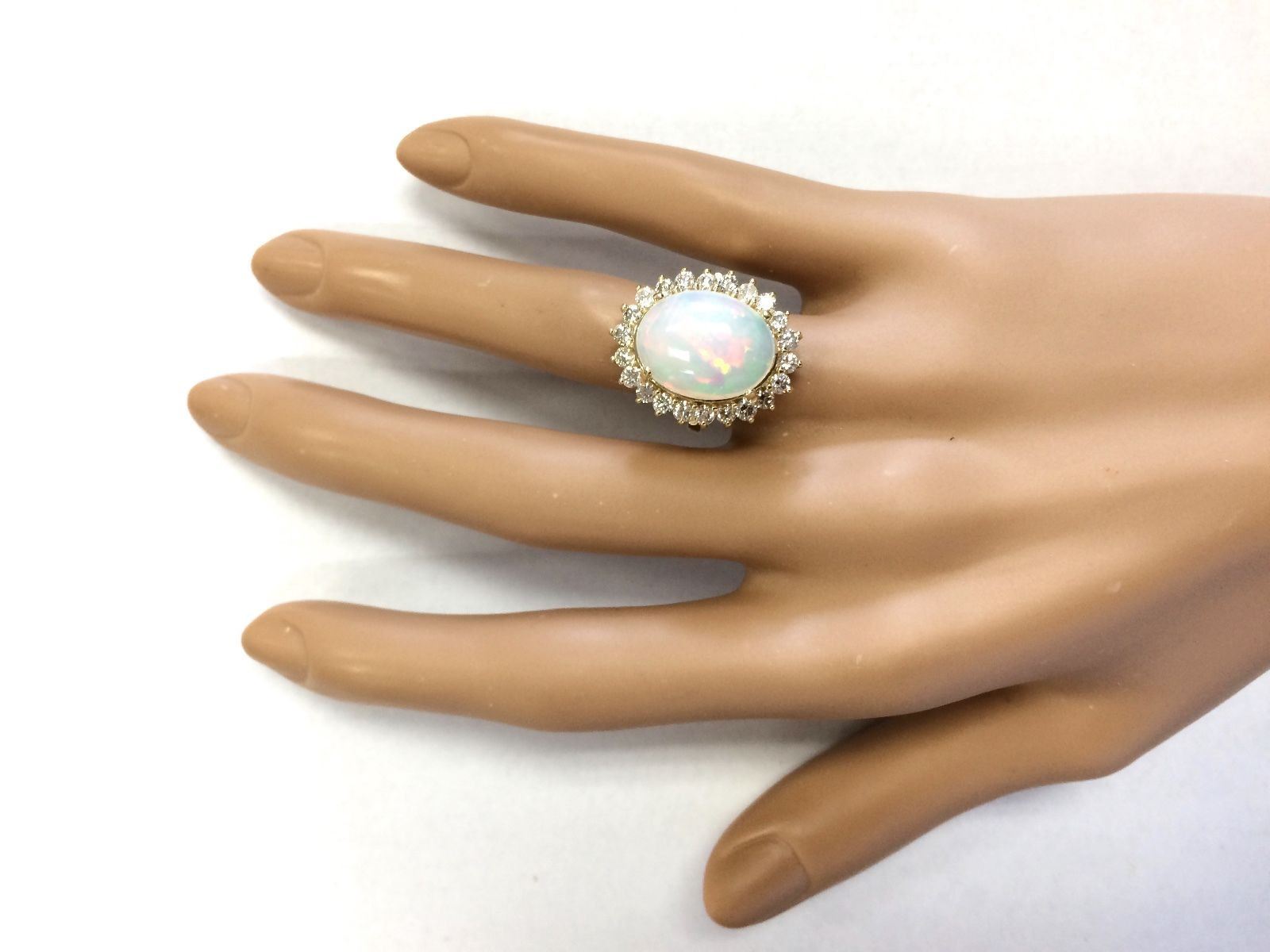 7.26 CTW Natural Opal And Diamond Ring In 18K Yellow Gold