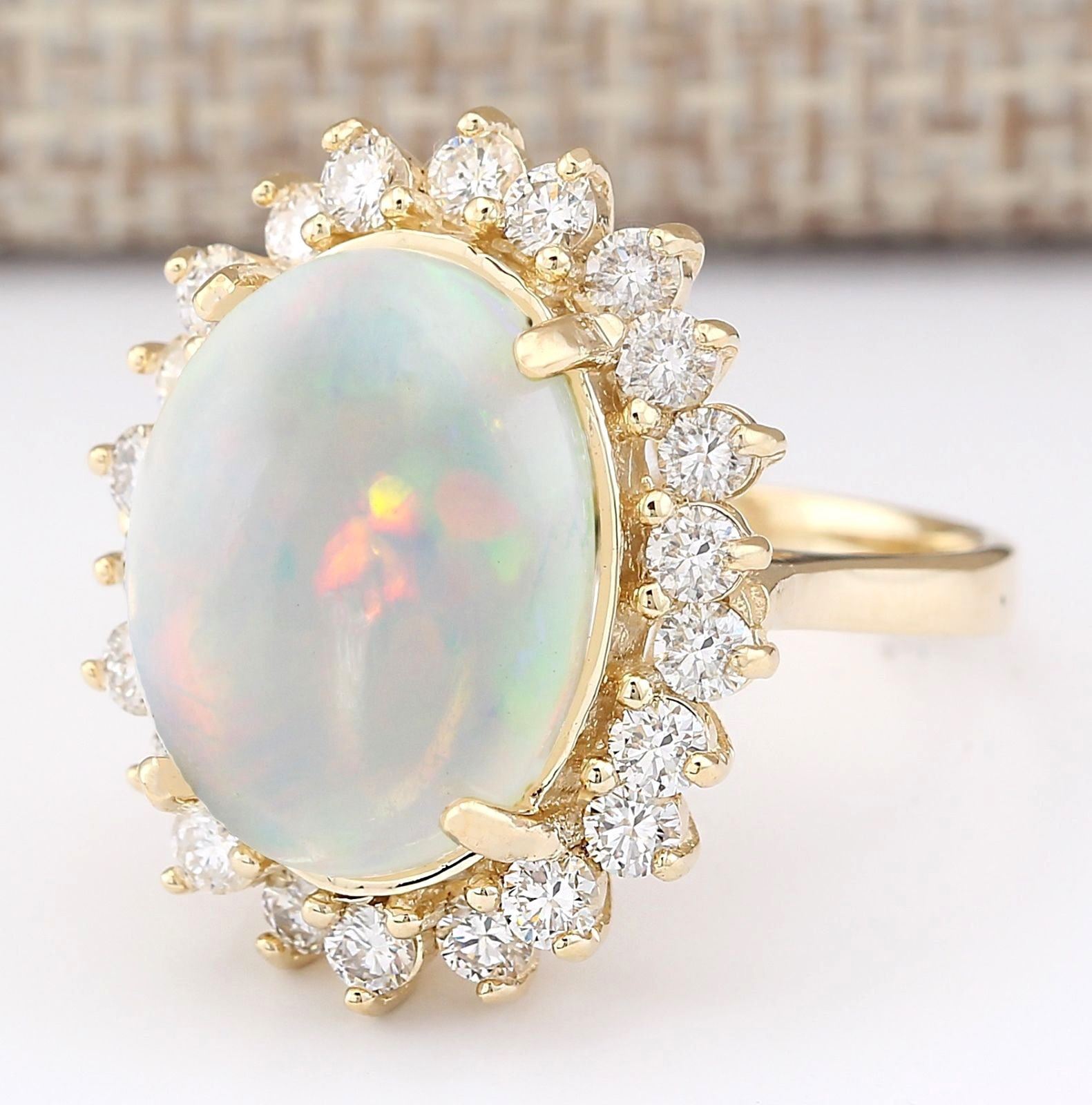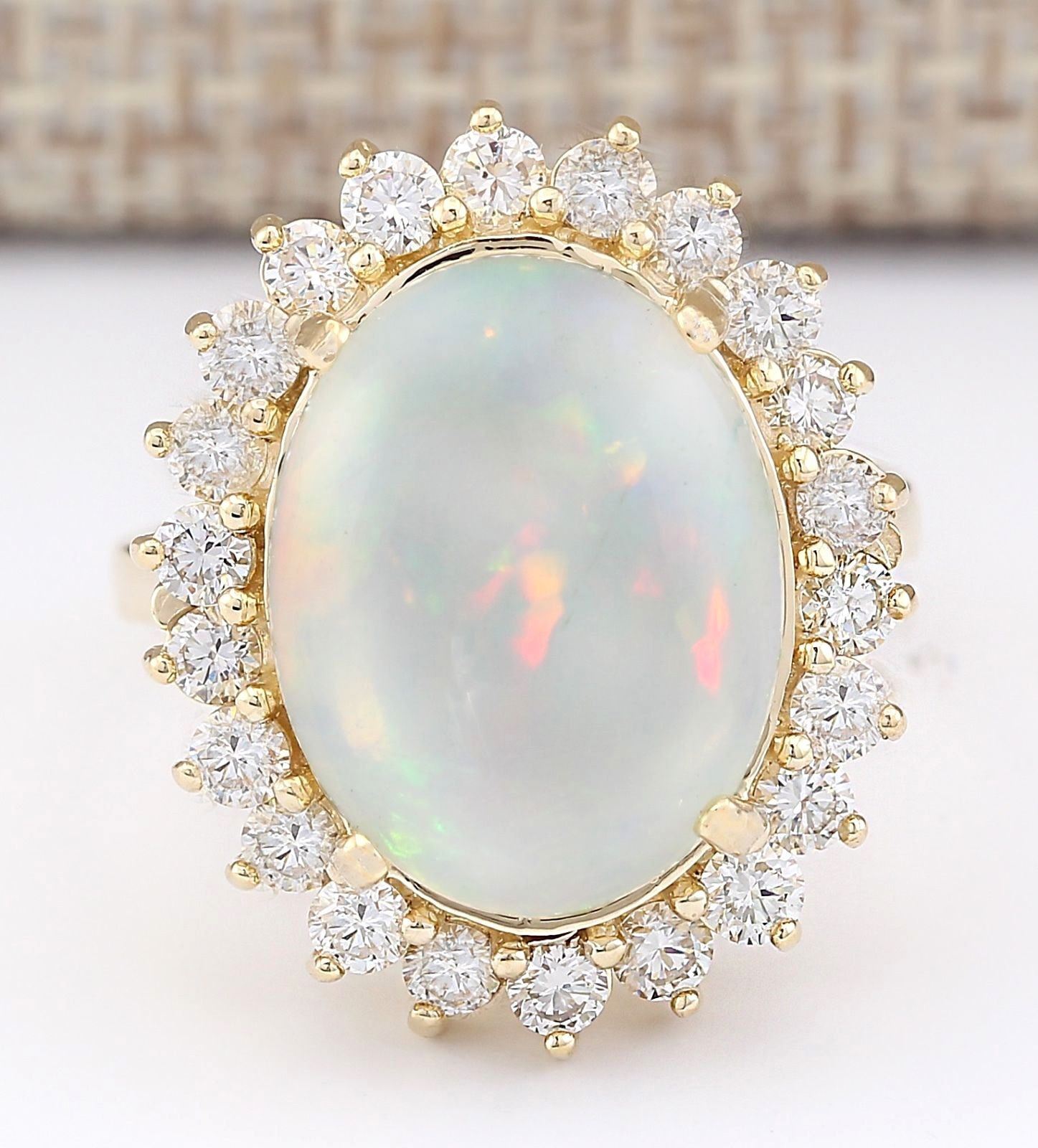 7.26 CTW Natural Opal And Diamond Ring In 18K Yellow Gold