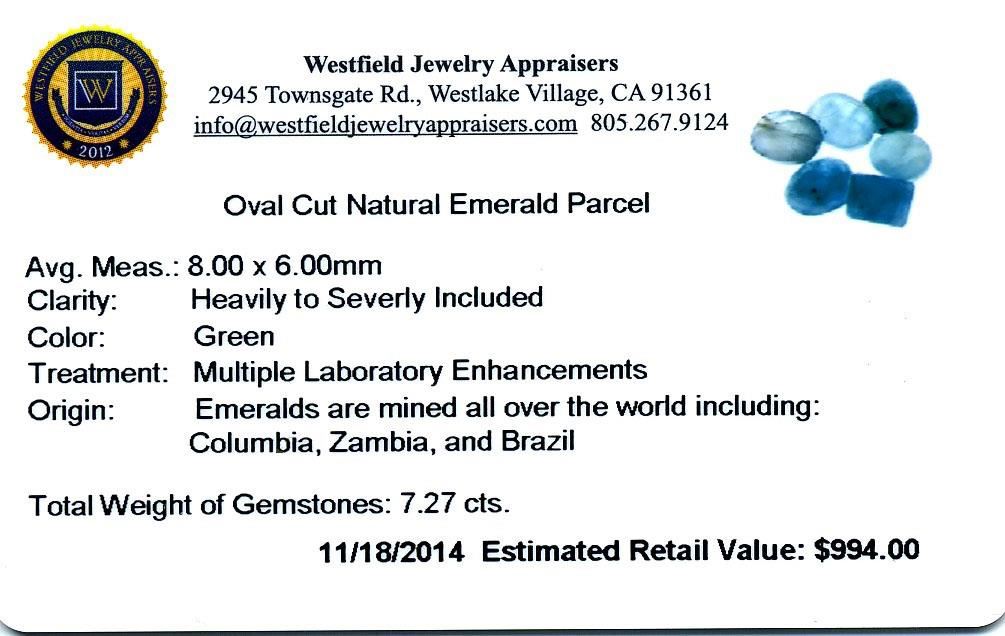 7.27cts. Oval Cut Natural Emerald Parcel Westfield Appraised at $994.00.