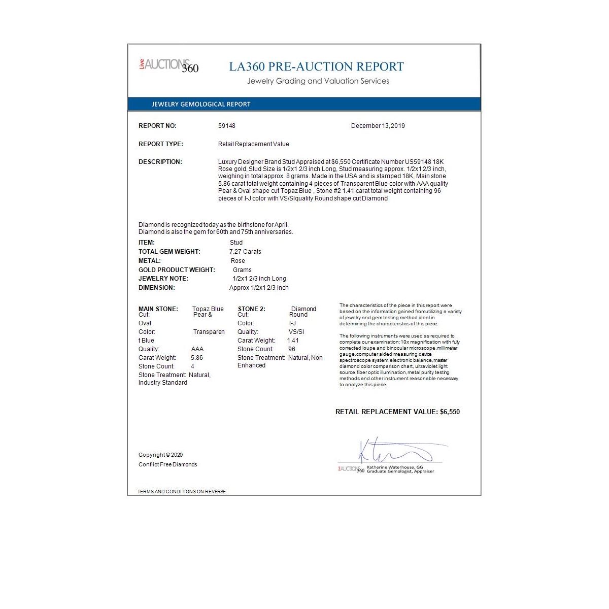 REF-170H2R - SKU: 59148 ---- 7.27 ctw Blue Topaz & Diamond Earrings 18K Rose Gold