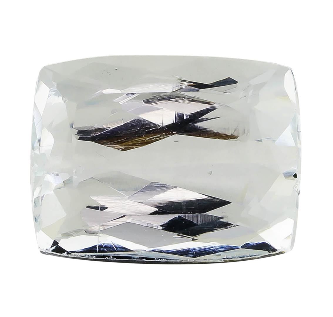 One natural rectangle cushion cut aquamarine with an exact weight of 7.29ct., clarity is eye clean - abraded crown, slightly grayish greenish blue. Gemological Appraisals Services estimates the retail value at $1458 GAS Appraised.
