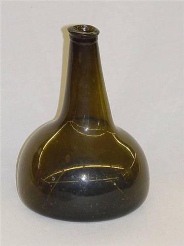 7 3/4" DUTCH ONION STYLE BOTTLE - OLIVE GREEN W/ PONTIL, SURFACE SCRATCHES;