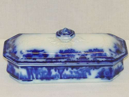 7 3/4" FLOW BLUE RAZOR BOX - SCINDE PATTERN BY ALCOCK - CRAZING LID;