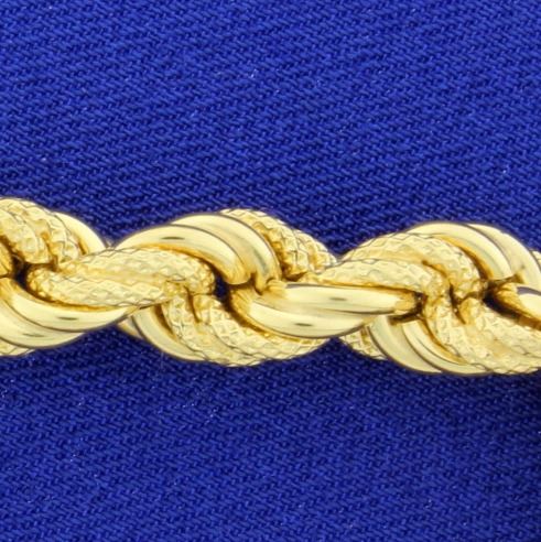 In 18K yellow gold this bracelet is 7 1/2mm thick with a large clasp that is 16mm in diameter. 21.1g