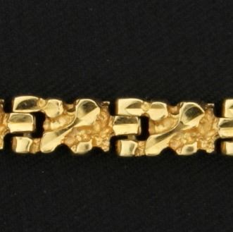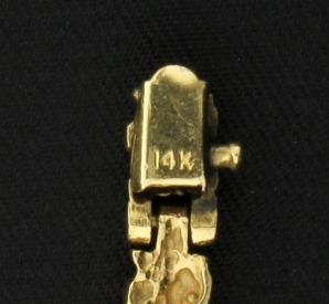 14K yellow gold, it is 4.5mm wide and has a safety clasp. 11.9g