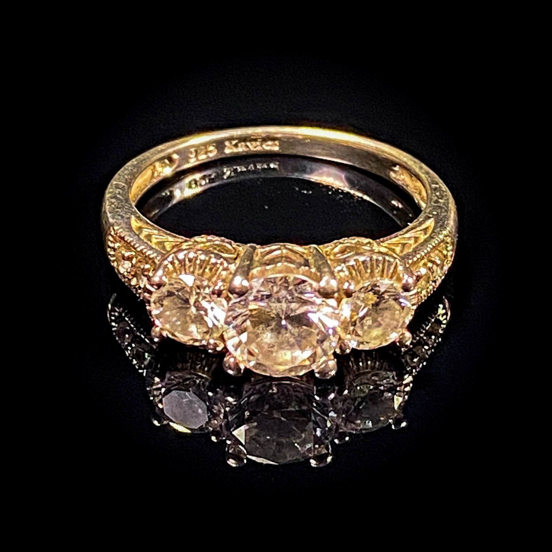 7 3/4 Size Stirling Silver Three Diamond Ring